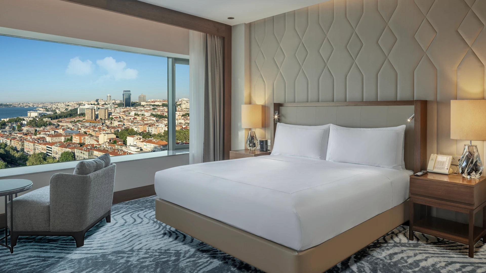 The hotel’s unique S-shaped design ensures almost every room enjoys breathtaking vistas of the waterway, blending modern comforts with Turkish opulence and thoughtful elegance.