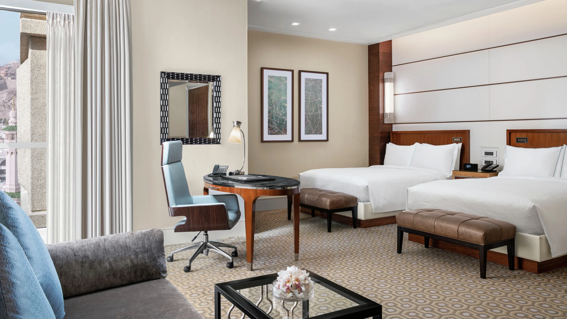 Spacious and elegantly furnished rooms and suites feature modern amenities, including 47-inch LCD TVs, hydromassage showers, separate tubs, premium bedding, and soundproofing. Many rooms provide inspiring views of the Haram and Kaaba, with some offering exclusive butler service and Executive Lounge access.