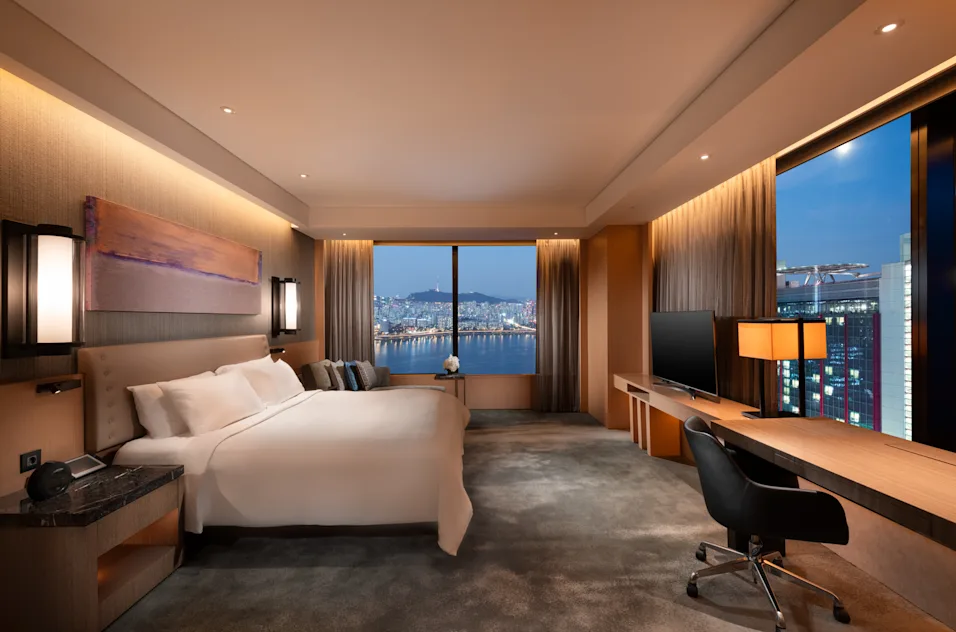 Executive-level guests enjoy access to the 37th-floor Executive Lounge with breakfast, snacks, and cocktails. Conrad Seoul offers an extensive 2,600 sqm of event space, including ballrooms and meeting rooms for high-end business and social functions.