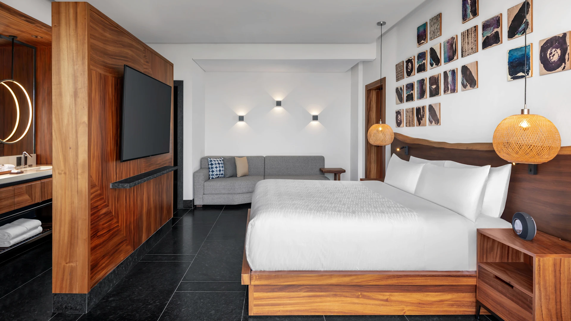 The 349 rooms and suites showcase organic design elements, floor-to-ceiling windows, and spa-like bathrooms. Many accommodations have direct beach or pool access, spacious interiors, and luxury bedding ensuring ultimate comfort.