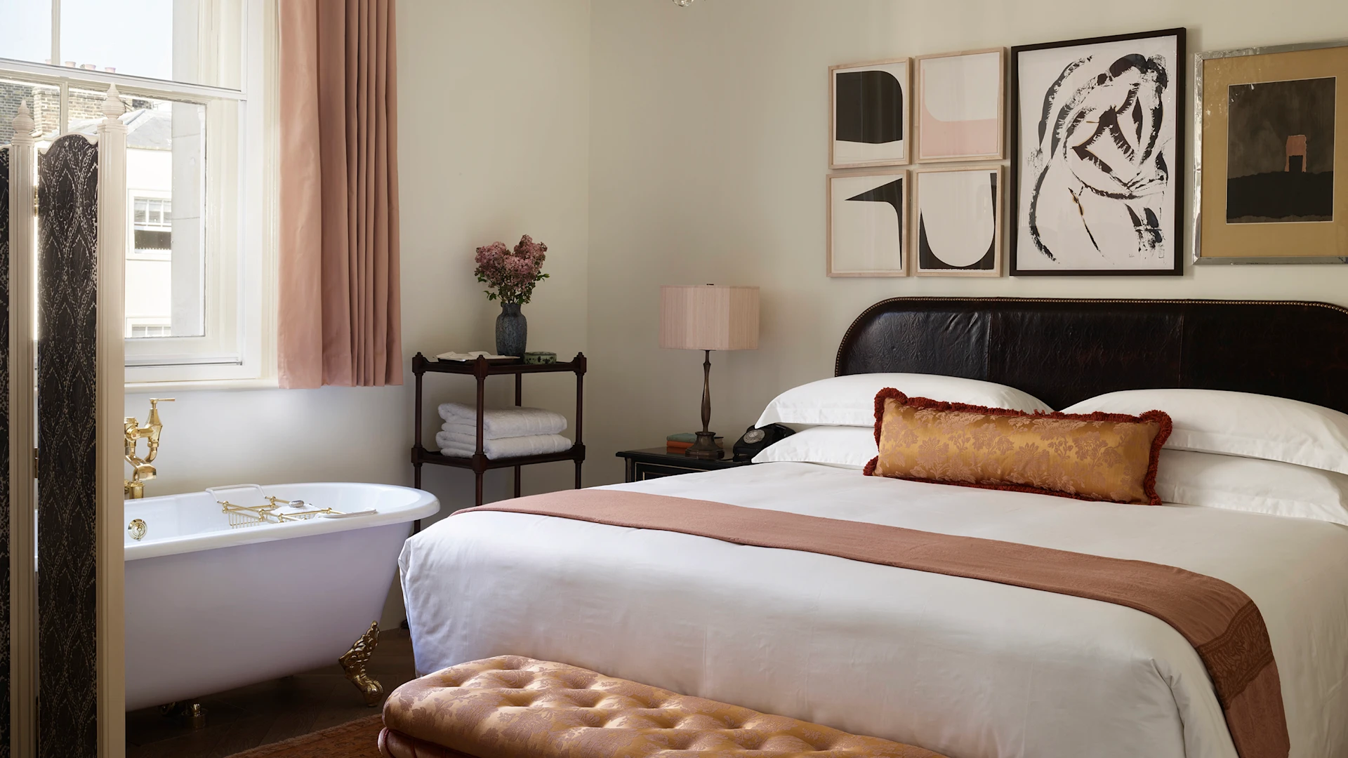 The hotel offers a blend of traditional British elegance and contemporary comfort, featuring 91 individually furnished rooms and 16 suites with premium bedding, heated floors, and spacious marble bathrooms. Many rooms provide stunning views of the Royal Opera House opposite the hotel.