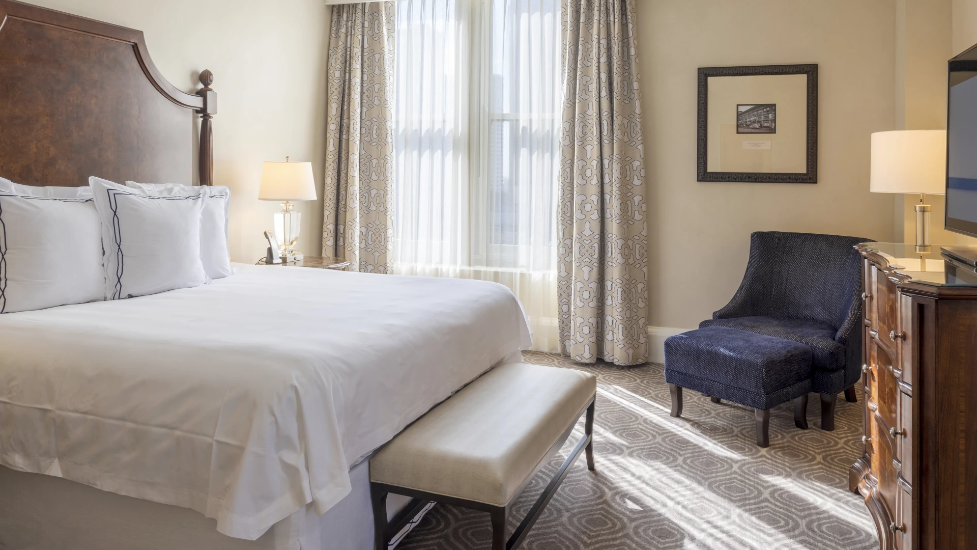 With 504 luxurious guestrooms and 135 suites, including several Astoria suites, The Roosevelt New Orleans blends historic grandeur with modern elegance in the vibrant heart of the French Quarter. Rooms feature premium linens, flat-screen TVs, refreshment centers, safes, bathrobes, and 24-hour in-room dining.