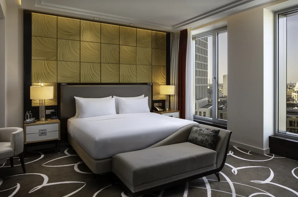 With 208 refined rooms and suites, guests enjoy marble bathrooms, Nespresso machines, modern technology, and elegant decor. Suites on upper floors boast private balconies and panoramic cityviews, with exclusive access to the tower elevator.